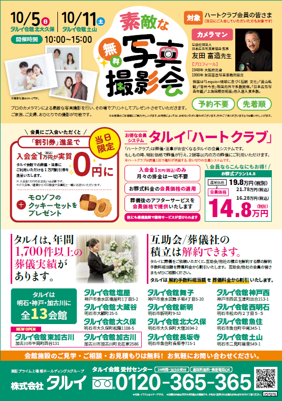 お近くのタルイ会館を探す兵庫県 神戸 / 明石 / 加古川近郊のご葬儀はお任せください。